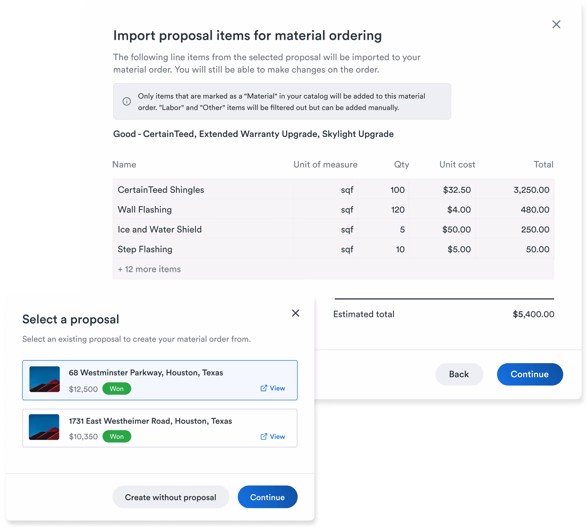 Now you can turn your signed proposal into a detailed material order that includes quantities and totals. Meaning you’ll never have to copy and paste again.