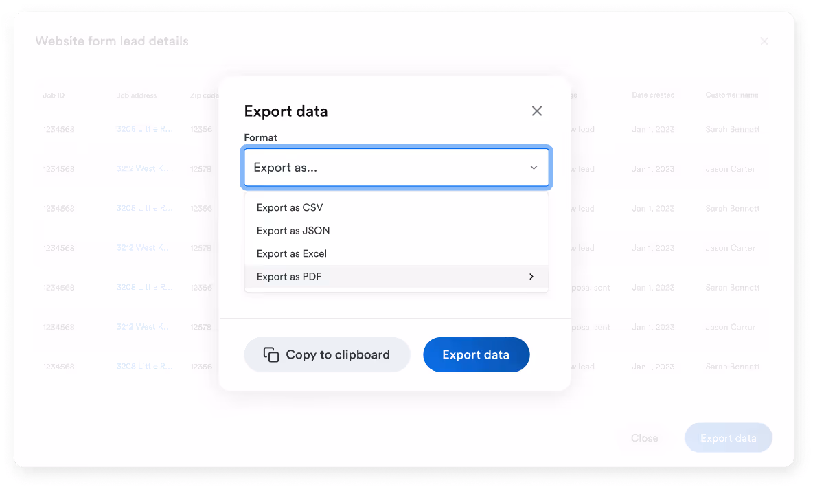 Every individual job included in your report. Use it to see details like job stage, payment status, and date last updated.