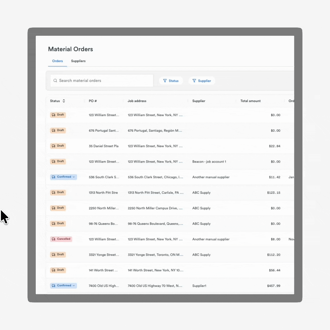 - Know when materials are ready. Receive order status updates from ABC, QXO, and SRS.