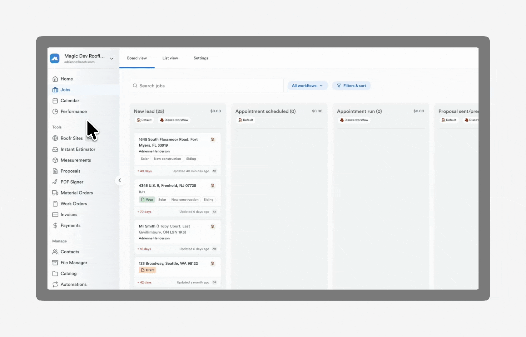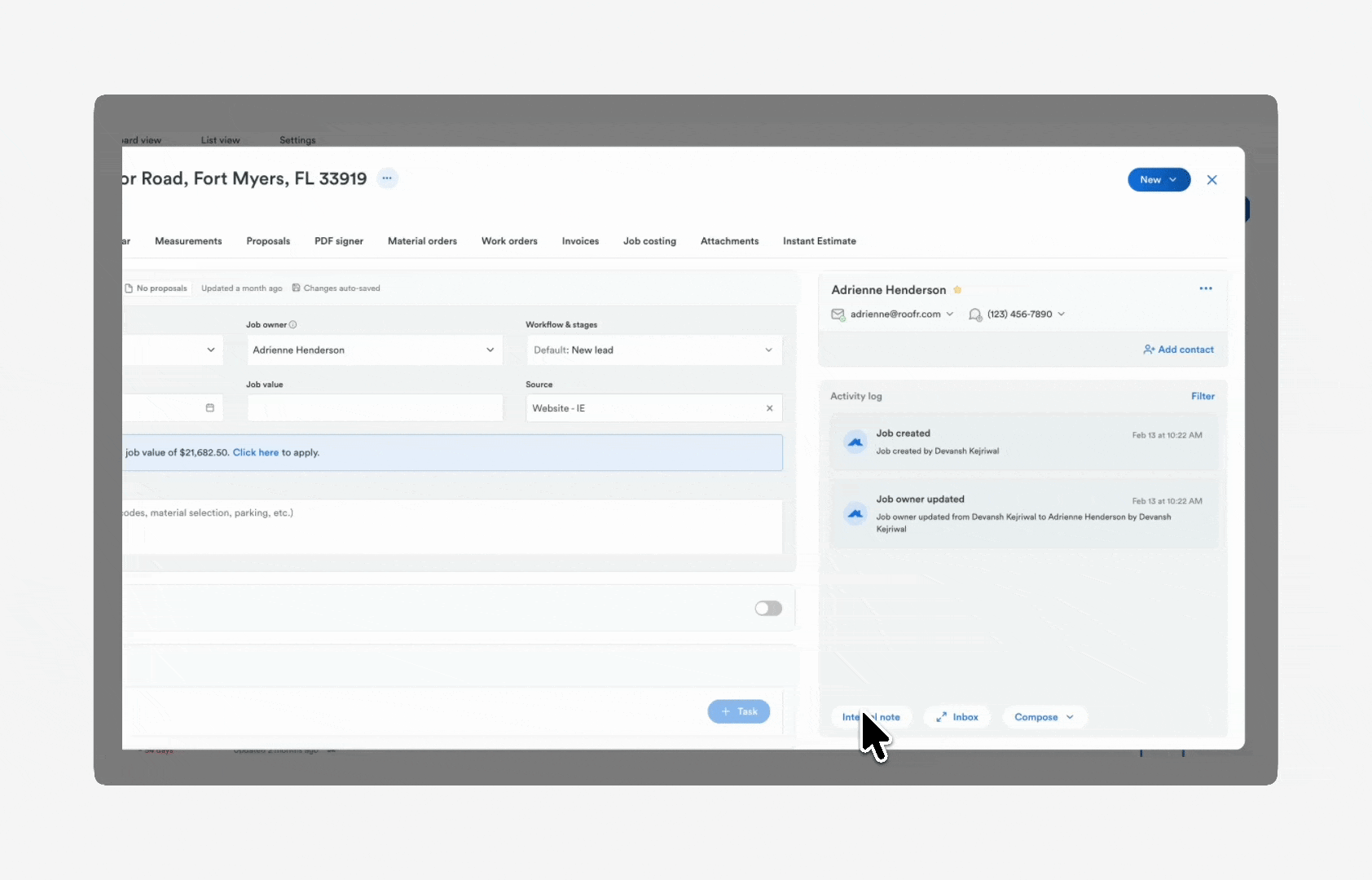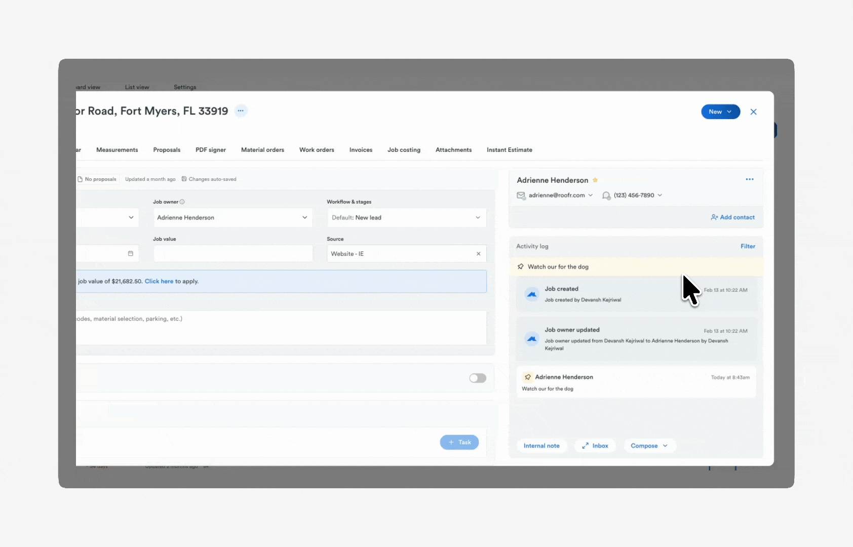 1.2 Work Orders 2.0 Users can automatically create work orders from signed proposals, assign subcontractor crews, use templates, and send work orders via email or SMS. Learn more